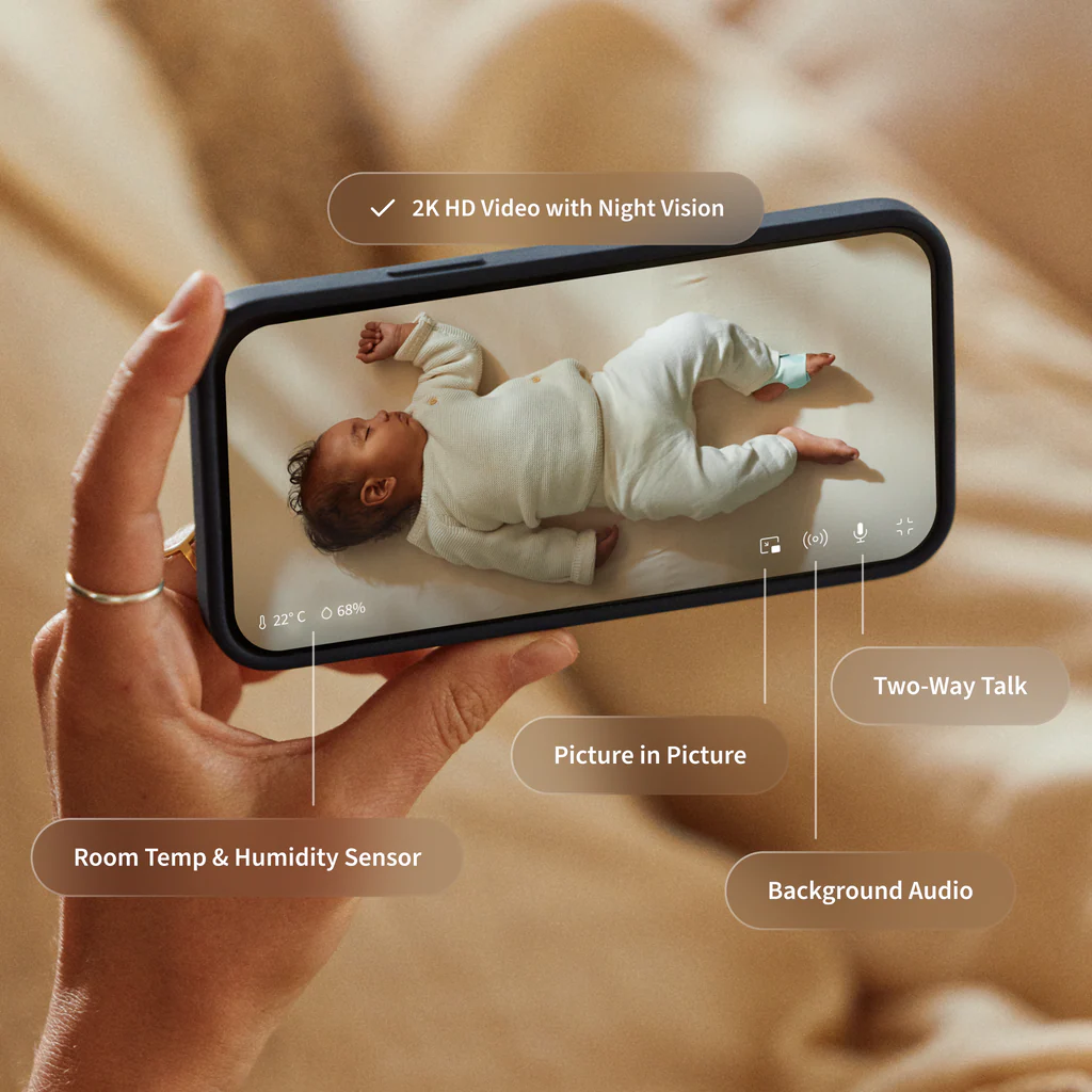 • Okos érzékelők: A beépített szenzorok érzékelik a mozgást, a hangot és a sírást, és valós idejű értesítést küldenek, ha babád figyelmet igényel.
