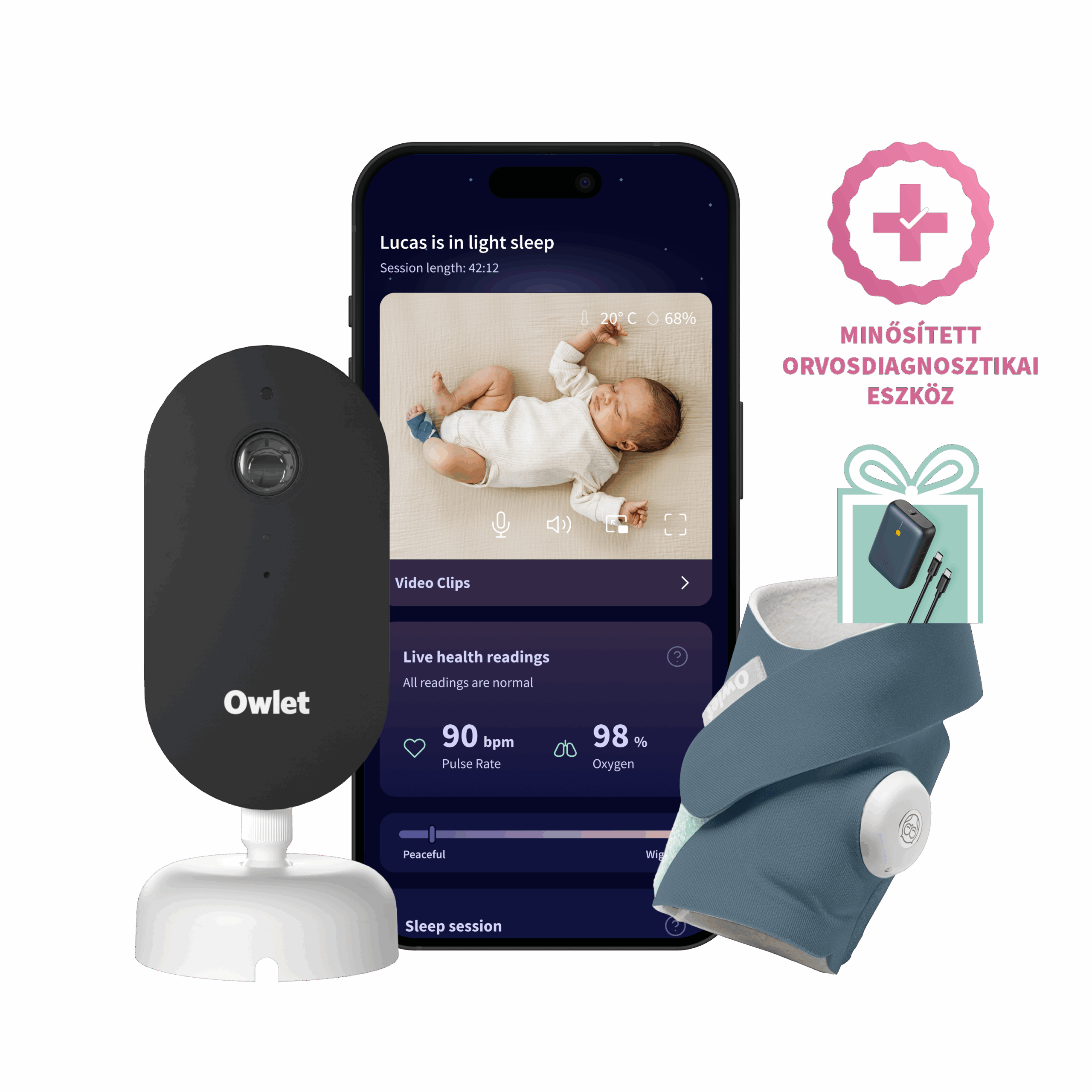 Az Owlet Dream Duo™ (3. generáció) a piac legfejlettebb babafigyelő rendszere – egyesíti az orvosdiagnosztikai minősítéssel rendelkező Dream Sock® okos babazoknit, az intelligens HD Dream Sight™ kamerát, valamint az Owlet Dream applikációt egyetlen, összekapcsolt megoldásban.