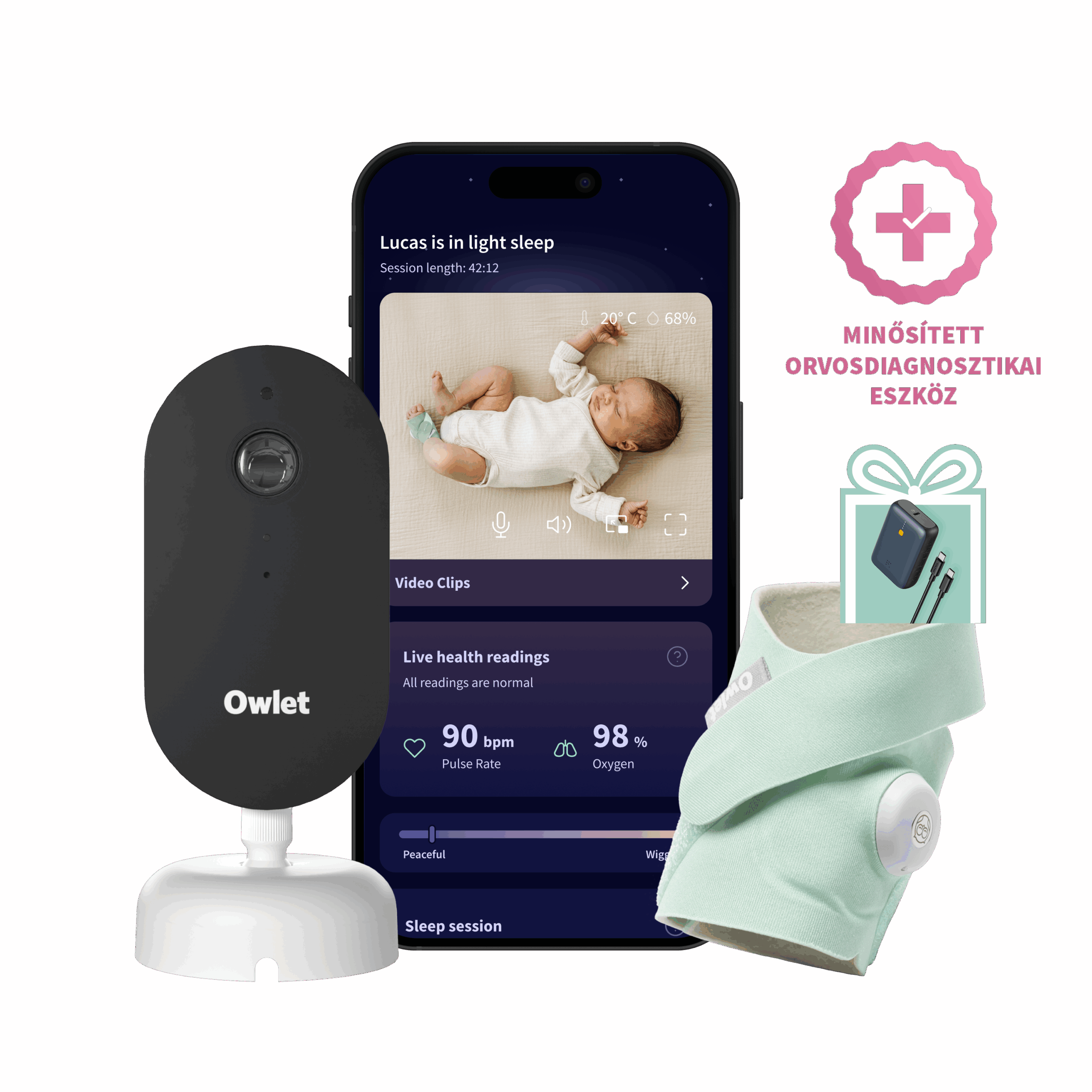Owlet Dream Duo™ (3. generáció) szett – Owlet Dream Sock™ Okos babazokni 0-18 hónapig (Mentazöld) + Owlet Dream Sight™ kameraElérhetőség: 6 készleten